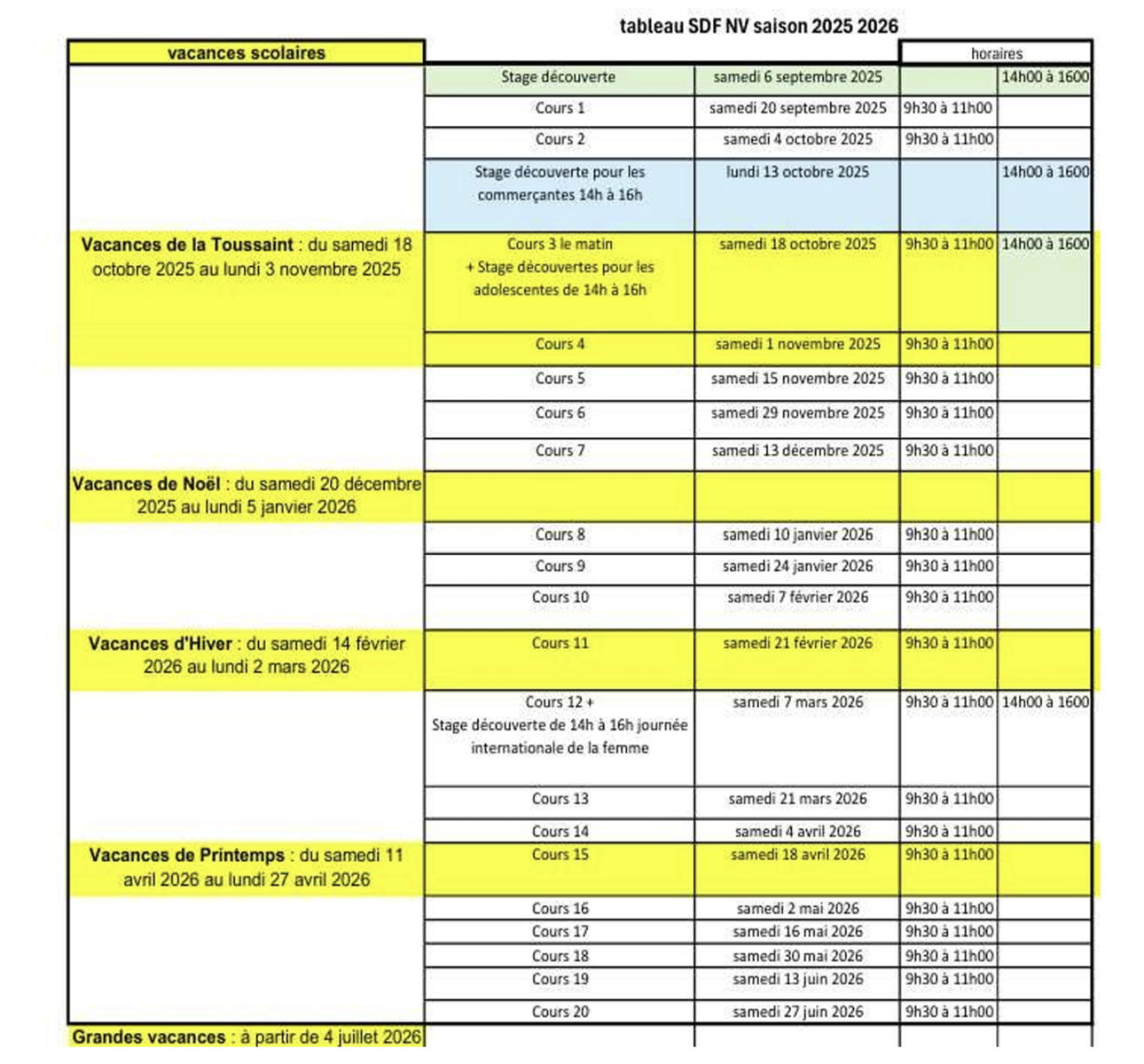 Les cours ont lieu un samedi sur deux de 9h30 à 11h00 (suivant planning)